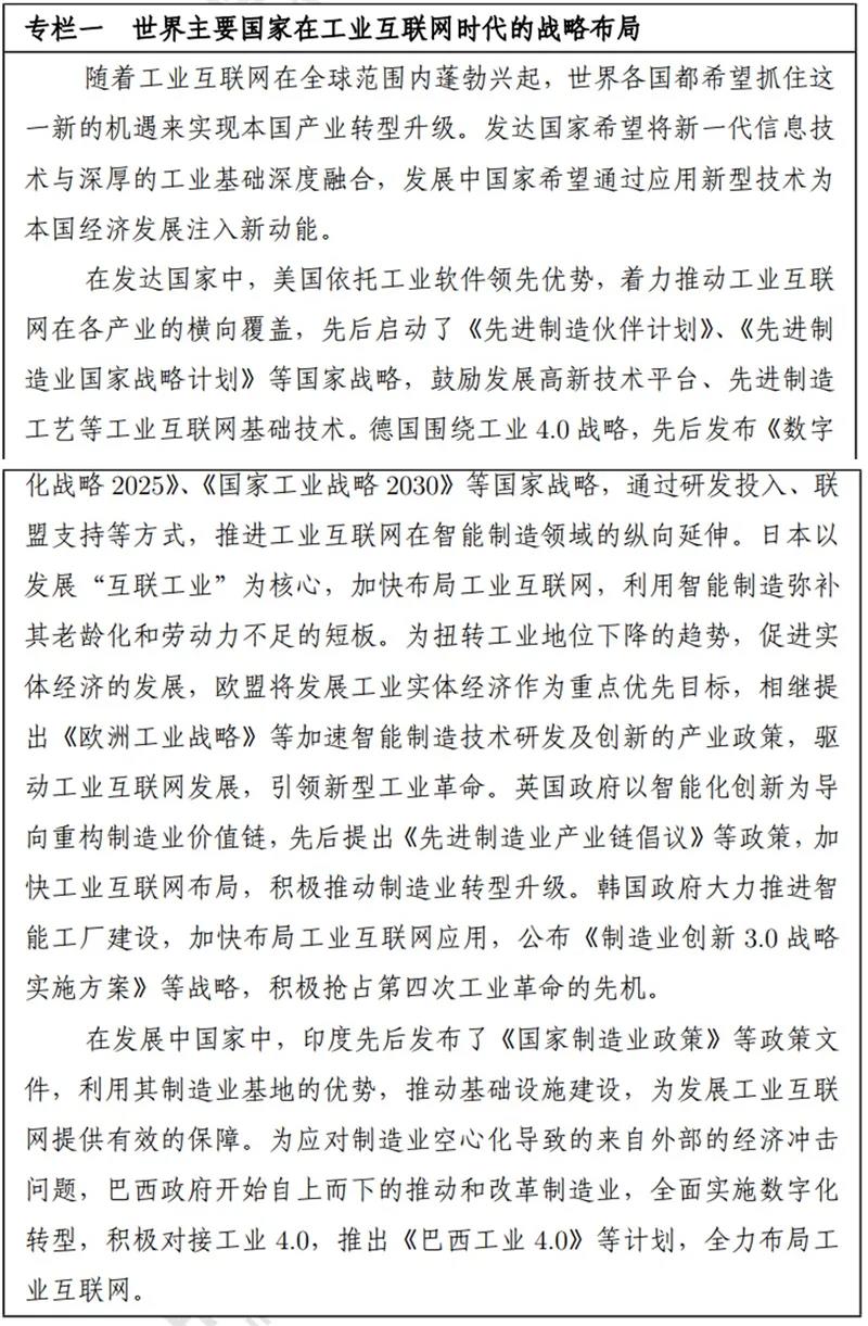 黨中央、國務院高度重視工業互聯網發展。習近平總書記指出,“要深入實施工業互聯網創新發展戰略”,“持續提升工業互聯網創新能力,推動工業化與信息化在更廣范圍、更深程度、更高水平上實現融合發展”。盡管工業互聯網發端于美國、德國、日本等發達國家,但作為國家戰略,工業互聯網因中國獨特的制度優勢正在我國得到了創新發展。