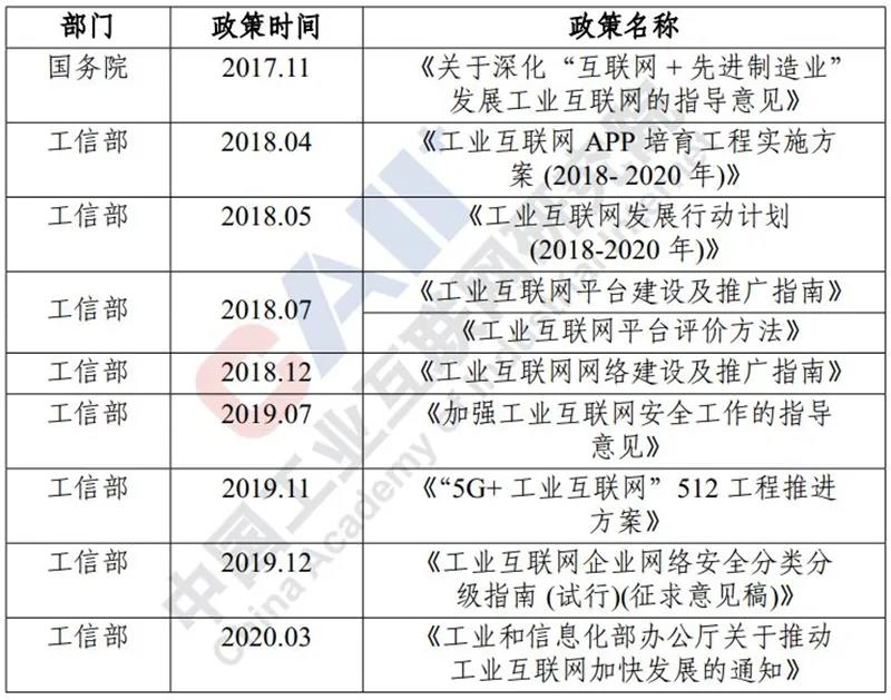 如下表所示,2017 年 11 月,國務院發布《關于深化“互聯網 + 先進制造業”發展工業互聯網的指導意見》,這是規范和指導我國工業互聯網發展的綱領性文件。該文件確定了工業互聯網“323 行動”,即打造網絡、平臺、安全三大體系,推進大型企業集成創新和中小企業應用普及兩類應用,構筑產業、生態、國際化三大支撐等 7 項任務。