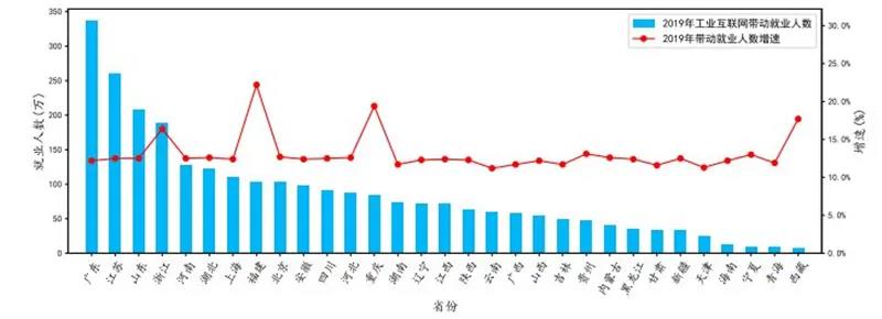 從工業互聯網產業帶動各省市的就業人數的增速上看, 2019 年工業互聯網產業帶動就業人數的增速排名前十的省份分別是福建、重慶、西藏、浙江、貴州、寧夏、北京、湖北、河北、內蒙古等。如上圖所示,在其余各省份均保持相對平穩增長態勢之外,福建、重慶、浙江等三地在規模較高的情況下仍然保持明顯增速,增速分別達到 22.22%、 19.40%、 16.44%。三地工業互聯網產業高速發展源于地方政府有效突出的政策支持。福建2018 年 6 月出臺了《關于深化“互聯網 + 先進制造業”發展工業互聯網的實施意見》,以建成“十百千萬”工業互聯網工程為目標,加速打造工業互聯網發展體系。