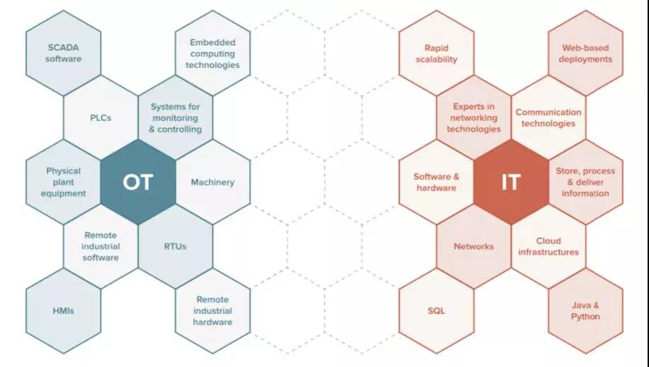 即使存在這些差異,而現(xiàn)在正好存在這樣的機會 讓 OT 和 IT 相互融合, 通過提升各自的能力,從而形成一種真正具有顛覆性的技術(shù)。在工業(yè) 3.0 的時代, OT 和 IT 保持著彼此相互的分割。而為了滿足今天的 數(shù)據(jù)密集型的環(huán)境和進入工業(yè) 4.0,企業(yè)必須將 OT 和 IT 交匯融合匹配。