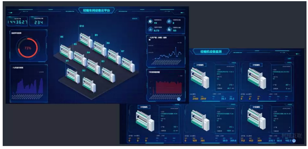 樹根科技將印染設備聯網,通過云平臺實現計劃和工藝下達、工藝參數在線檢測、產量實時上報、能源數據實時監測、物流實時跟蹤、設備運行效率檢測等功能。