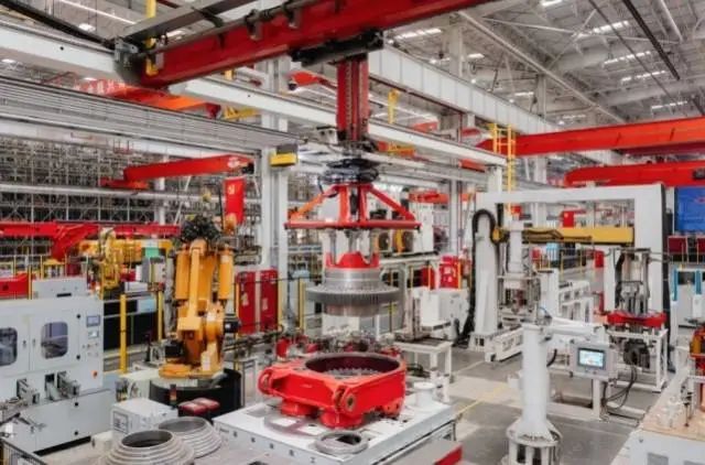 在位于北京的三一樁機(jī)工廠,上百臺機(jī)器人干得熱火朝天,生產(chǎn)節(jié)拍加快了不止4倍,7天就能交付一臺旋挖鉆機(jī),月產(chǎn)能更是翻了一番達(dá)到300臺。