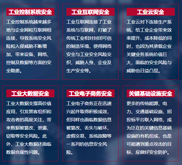 工業(yè)信息安全涉及工業(yè)領(lǐng)域各個(gè)環(huán)節(jié),一般而言,包括工業(yè)控制系統(tǒng)安全、工業(yè)互聯(lián)網(wǎng)安全、工業(yè)大數(shù)據(jù)安全、工業(yè)云安全、工業(yè)電子商務(wù)安全、關(guān)鍵信息基礎(chǔ)設(shè)施安全等內(nèi)容。
