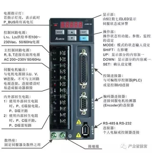 伺服驅動器主要有控制回路電源、主控制回路電源、伺服輸出電源、控制器輸入CN1、編碼器接口CN2、連接起CN3。控制回路電源是單相AC電源,輸入電源可單相、三相,但是必須是220v,就是說三相輸入時,咱們的三相電源必須經過變壓器變壓才能接,對于功率較小的驅動器,可單相直接驅動,單相接法必須接R、S端子。伺服電機輸出U、V、W切記千萬不能與主電路電源連接,有可能燒毀驅動器。CN1端口主要用于上位機控制器的連接,提供輸入、輸出、編碼器ABZ三相輸出、各種監控信號的模擬量輸出。