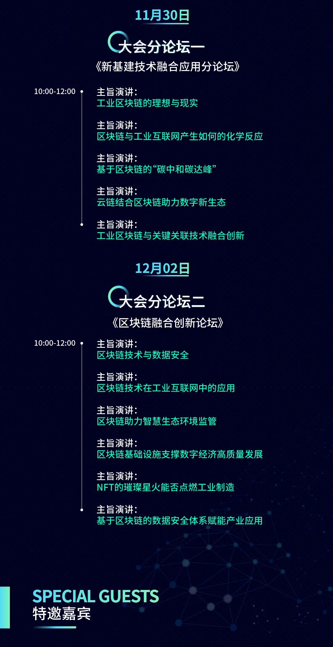 大會同期舉辦的兩大分論壇,“新基建技術融合應用分論壇”和“區塊鏈融合創新論壇”將圍繞區塊鏈技術在工業互聯網中的應用以及NFT等熱門話題,與全國各行業的頭部企業共同探討區塊鏈的發展。