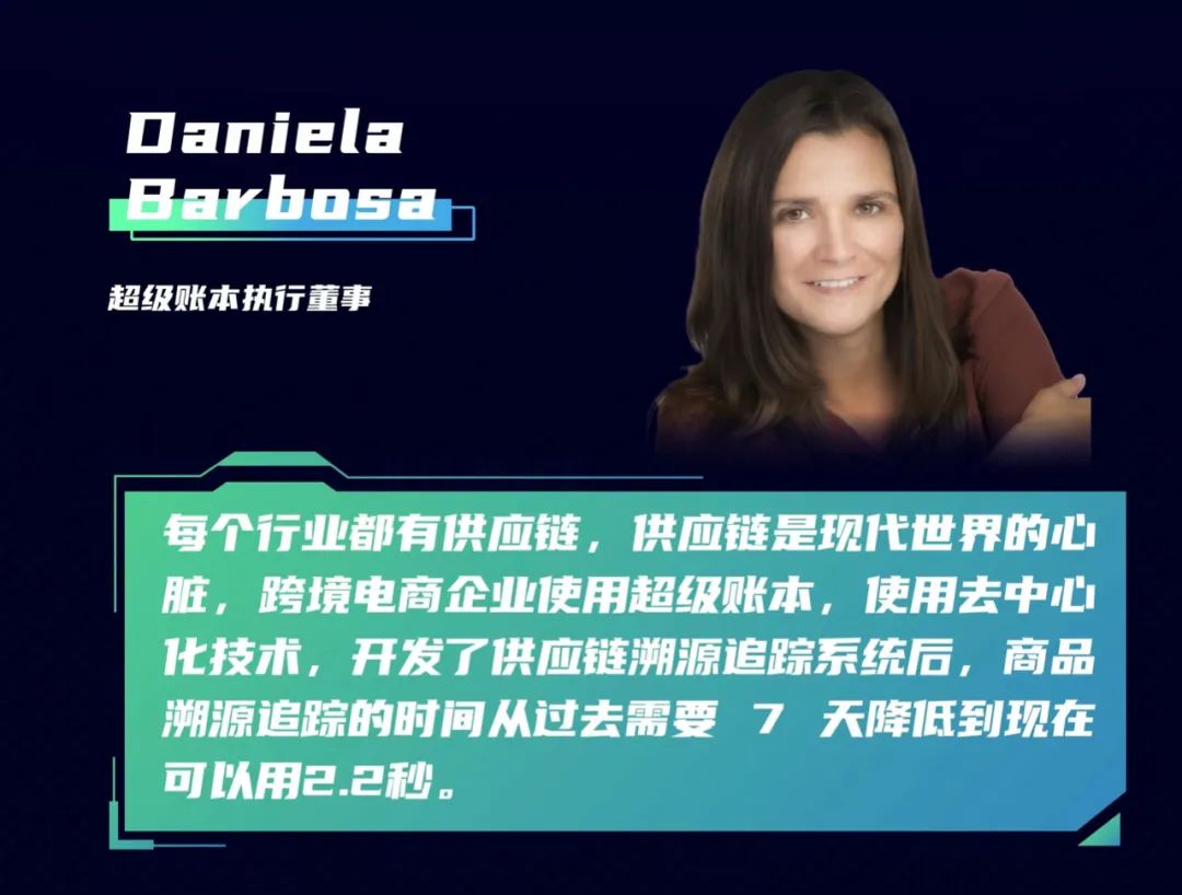 超級賬本執(zhí)行董事Daniela Barbosa則在現(xiàn)場帶來了更多關于“超級賬本”的論點,她表示超級賬本不但持續(xù)推進區(qū)塊鏈技術,也持續(xù)關注行業(yè)應用,這次發(fā)布制造業(yè)特別興趣小組,是在原來的垂直行業(yè)的特別興趣小組比如金融貿(mào)易、資本市場、氣候、電信、供應鏈等領域外的一次突破,也意味著制造業(yè)使用區(qū)塊鏈正走向成熟。由信通院和樹根格致選出來了兩位組長,也表示他們在制造業(yè)中使用區(qū)塊鏈的領導地位。未來期待和更多中國優(yōu)秀代表達成合作,共同推進中國工業(yè)區(qū)塊鏈的進展。