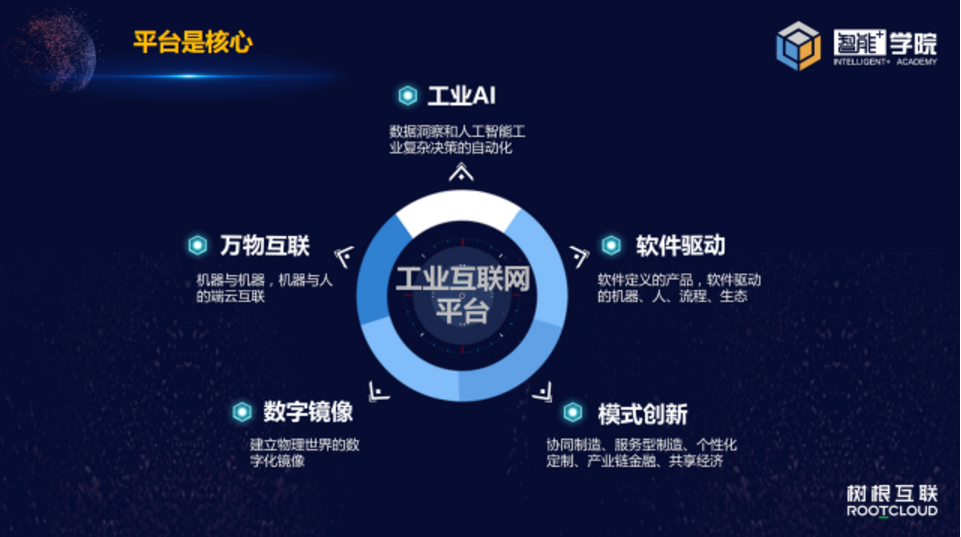 網(wǎng)絡(luò)化更多是說新的連接,就是把機(jī)器、設(shè)備、人、物全部要連接網(wǎng)絡(luò)上,同時(shí)會(huì)有所有這些對(duì)象的數(shù)字化,就是我們的數(shù)字雙胞胎。最后一點(diǎn),當(dāng)所有這些物理對(duì)象和人數(shù)字化以后它就可以把新一代的技術(shù)能夠完全使用起來(lái),也可以把互聯(lián)網(wǎng)支撐的商業(yè)模式能夠使用起來(lái)實(shí)現(xiàn)一個(gè)自動(dòng)化運(yùn)營(yíng)。而整個(gè)轉(zhuǎn)變的核心是工業(yè)互聯(lián)網(wǎng)平臺(tái)。