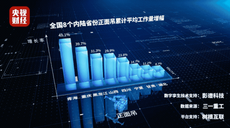 央視財經(jīng)挖掘機指數(shù)顯示,2021年正面吊累計平均工作量(小時)同比增幅TOP10省份中,有8個內(nèi)陸省份,其中有3個位于西北地區(qū)。這8個省份分別是青海(49.10%)、重慶、黑龍江、山西、四川、寧夏、甘肅、湖北等。