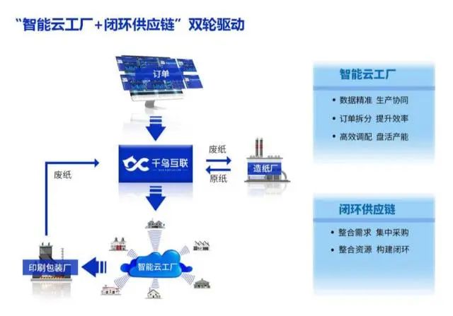 工業互聯網技術在各行各業的應用不僅帶來了創新商業模式,還在賦能產業鏈上下游升級方面表現突出。千鳥互聯的一系列產品與服務,端到端打通造紙廠、紙貿商、印刷包裝廠、廢紙打包站多個角色,形成從包裝訂單生產到原紙再到廢紙的數字化業務閉環,實現供應鏈整體的降本增效。