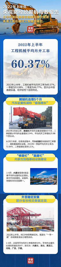 2022年上半年工程機(jī)械平均月開(kāi)工率為60.37%,二季度為66.77%,明顯高于一季度53.98%。