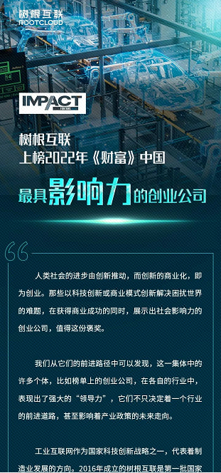 樹根科技上榜2022年《財富》中國最具影響力的創(chuàng)業(yè)公司