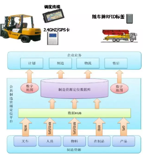 1) 通過物聯網技術實現對在制品、叉車、人員、設備資源的實時定位、追蹤與監控;