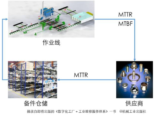 與數據為依據的改善性維修,是以作業系統價值模型(參照《工廠數字化+工業維修服務體系》第一章內容)以及可用度指標(可用度(availability:度量系統性能好壞的指標,即系統處在正常狀態的概率。可用度(A)=MTBF/(MTBF+MTTR)。MTBF:平均故障間隔時間,MTTR;平均故障修復時間,MTBF越大越好,MTTR越小越好,計量單位均為分鐘。),實施價值結構性數據、行為數據分析,以識別制約條件,實施針對性的改善,獲得組織管理和盈利能力優化和提升。