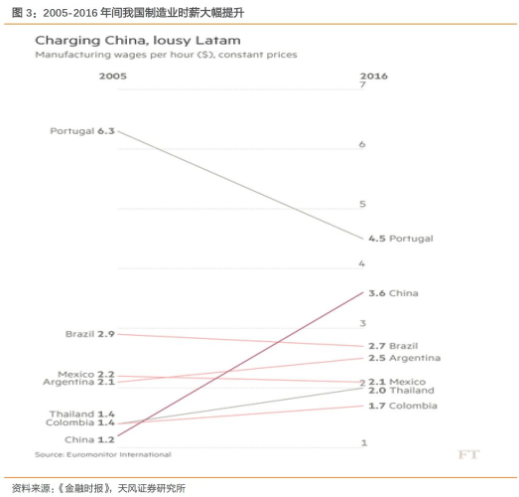 1、 成本急劇上升,人口紅利消失伴隨制造業薪酬大幅提高