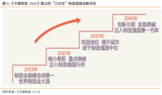 制造業是國民經濟的主體,是立國之本、興國之器、強國之基。2015 年 5 月 19 日,國務院印發《中國制造 2025》,部署全面推進實施制造強國戰略。這是我國實施制造強國戰略第一個十年的行動綱領。《中國制造 2025》提出,通過“三步走”實現制造強國的戰略目標:第一步,到 2025 年邁入制造強國行列;第二步,到 2035 年我國制造業整體達到世界制造強國陣營中等水平;第三步,到新中國成立一百年時,我國制造業大國地位更加鞏固,綜合實力進入世界制造強國前列。