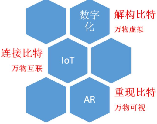 產(chǎn)品服務(wù)系統(tǒng)的崛起,依賴于同時(shí)發(fā)生的三大技術(shù):數(shù)字技術(shù)、物聯(lián)網(wǎng)IoT和增強(qiáng)現(xiàn)實(shí)AR。數(shù)字工業(yè)的浪潮啟動(dòng)了一個(gè)新時(shí)代。數(shù)字化解構(gòu)了比特,使得萬物虛擬化;物聯(lián)網(wǎng)連接了比特,使得萬物互聯(lián);而AR技術(shù)則重現(xiàn)了比特,使得萬物可視。