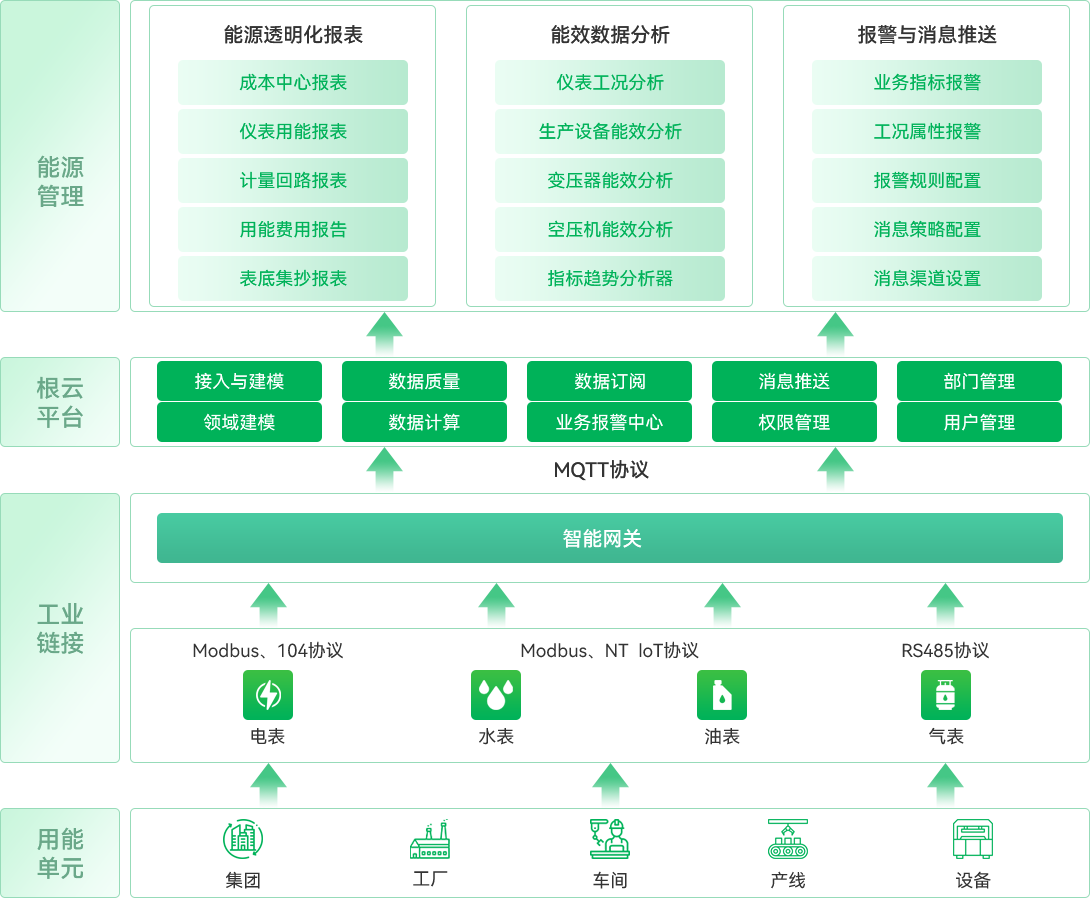 系統(tǒng)支持多維度構(gòu)建能源成本中心,各維度的用能對象與指標(biāo)均可自定義,解決能源統(tǒng)計粒度不夠細(xì)化的問題,為技改節(jié)能、指標(biāo)優(yōu)化提供有力數(shù)據(jù)支撐。