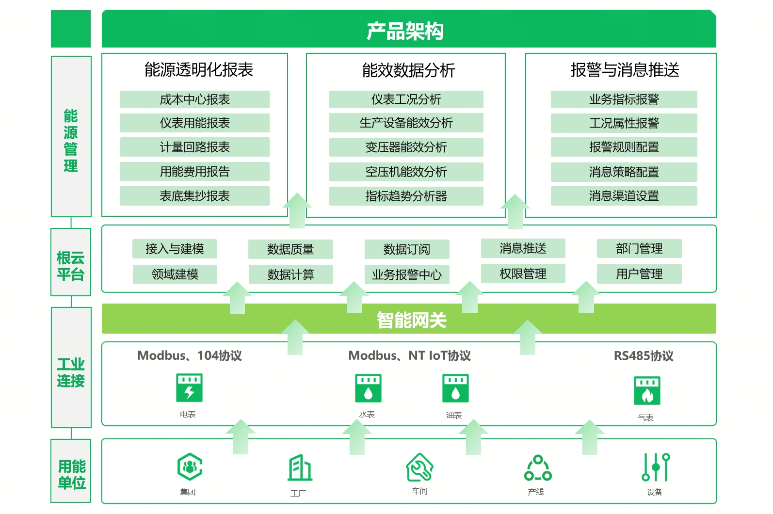 基于能源消耗數據和設備IOT數據,對能源安全及跑冒滴漏進行實時監控分析報警,對能源用量、能源成本、能源有效利用率等進行分析,同時建立產品能源消耗模型、設備能效轉化模型,指導企業排產及設備優化,降低能源成本。
