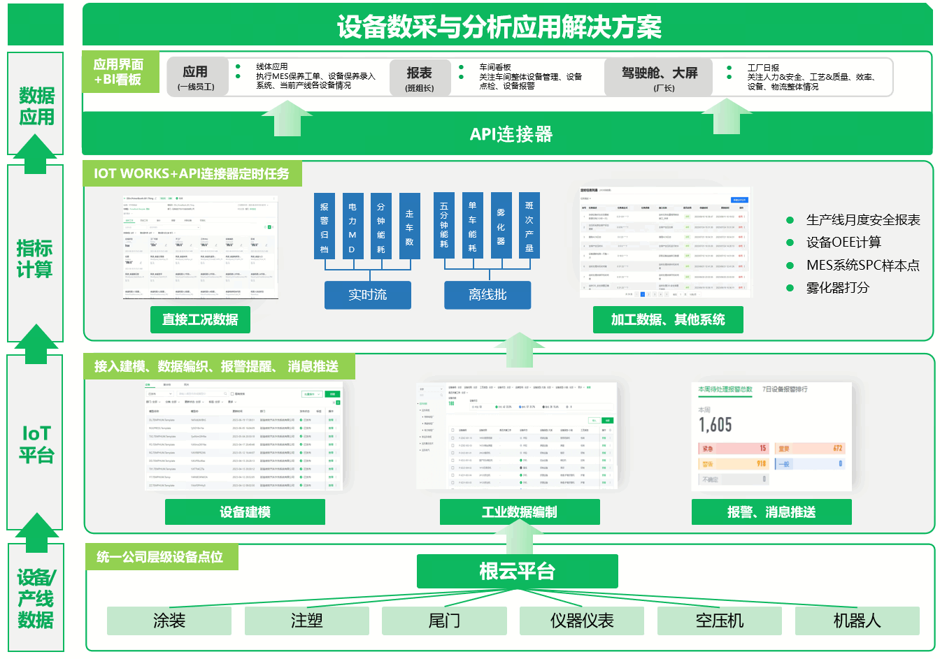 通過采集設備數據,并對數據進行建模分析,進行指標計算,實時準確的反映生產現場的各類生產加工狀態,指導業務分析與管理改進