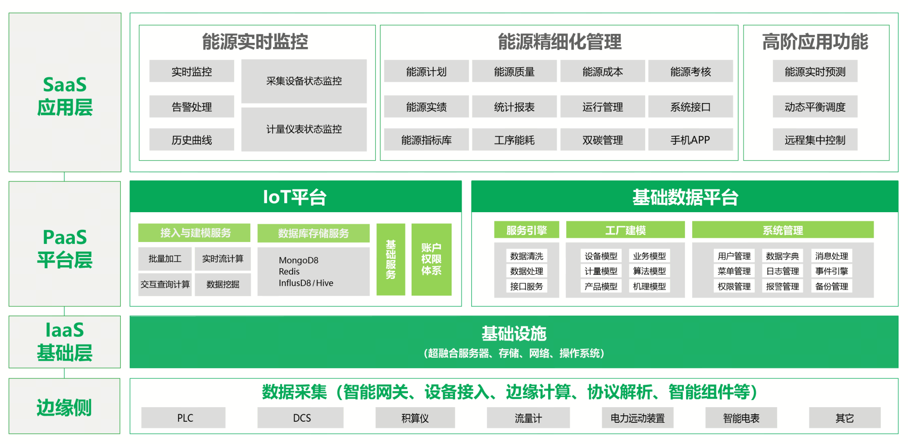 能源績效管理系統,核心涵蓋SCADA數采能源監控、能耗分析、能源計劃、能源預測、能源平衡、能效績效等功能